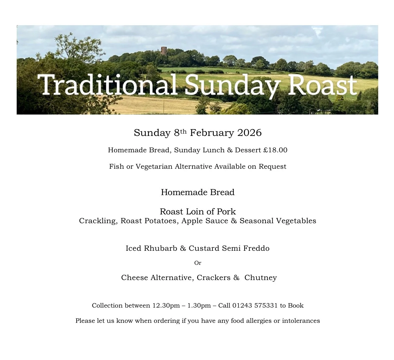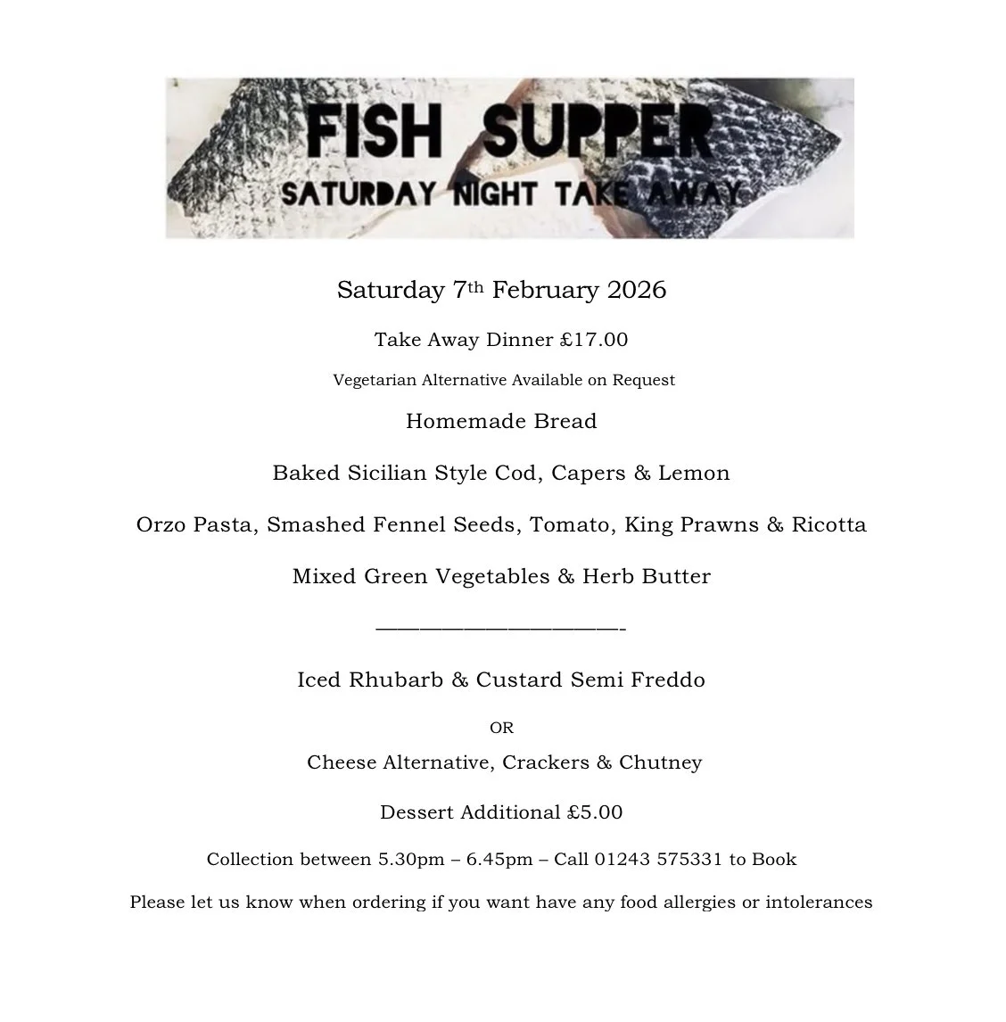 Please place your order to guarantee availability by calling us at the restaurant. Orders will be taken until Friday prior to the weekend. Payments can be taken over the phone by card or cash/card on collection. Please inform us of any dietary requirements